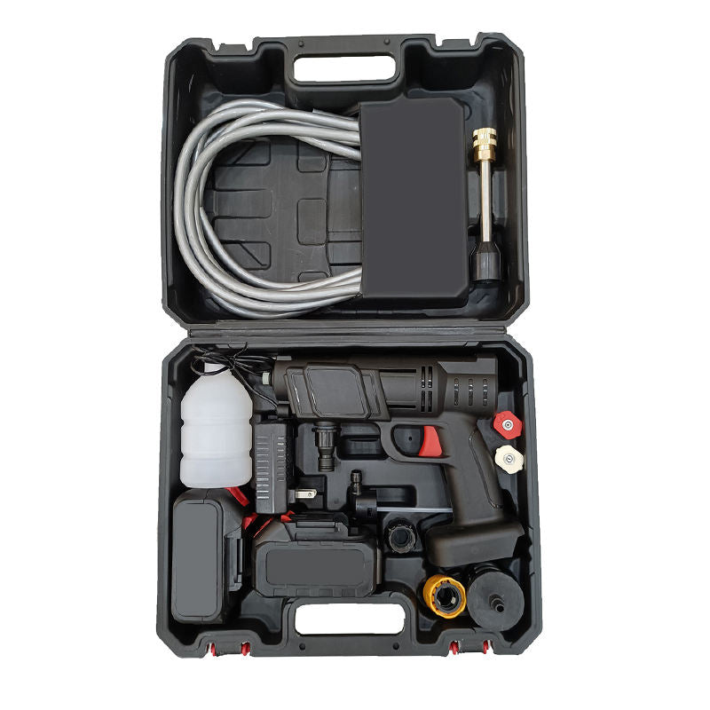 Wash your car, bike, windows, and more anywhere with the Cordless Car Pressure Washer — a powerful, portable high-pressure cleaning tool powered by a rechargeable 24V lithium battery. No fixed water source needed, no tangled cords — just pure cleaning power wherever you need it. Featuring multiple nozzle attachments for versatile spray patterns from a focused jet to a gentle rinse, this pressure washer tackles tough dirt, grime, and dust on vehicles, courtyards, windows, air conditioners, bicycles, and even garden irrigation. Compact, lightweight, and cordless — the ultimate outdoor cleaning companion. Available in multiple colors and backed by a 30 Days Replacement Warranty.